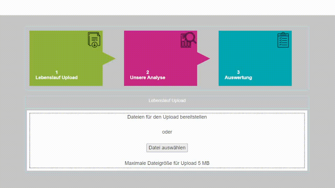 Mit nur einem Klick den Lebenslauf hochladen und innerhalb von 10 Sekunden liegt Deine Auswertung mit Verbesserungsvorschlägen vor.